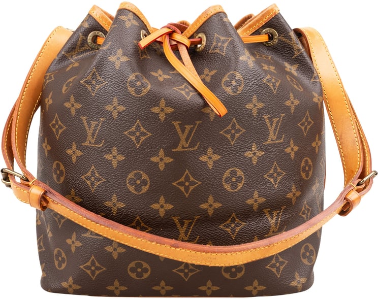Deze Sac Noe Petit shoulder bag uit de Monogram-collectie combineert het kenmerkende monogrampatroon in bruin en goudtinten met vachetta leer voor een tijdloze, elegante uitstraling. De ronde, zachte vorm en de leren trekkoorden aan de bovenzijde geven de tas een casual maar verfijnde look, terwijl de leren schouderband voor subtiel contrast zorgt. Gemaakt van canvas en vachetta leer en uitgevoerd met datacode AR0960, meet dit model 26 x 25 x 19 cm en biedt het een harmonieuze balans tussen luxe en functionaliteit.