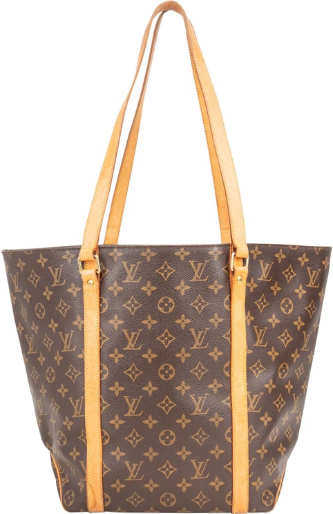 Een ruime Louis Vuitton Canvas Monogram Sac Shopping Shoulder Bag in bruin met het iconische monogrampatroon en lichtbruine Vachetta leren handvatten die elegant contrasteren met het canvas. De open totevorm van 49 x 33 x 14 cm biedt veel draagruimte en combineert functionaliteit met een tijdloze uitstraling. Vachetta leer en subtiele stiksels benadrukken het vakmanschap, terwijl de LV-logo’s en bloemmotieven voor herkenbare allure zorgen. De tas vertoont een zeer goede buitenconditie met patina en licht schuurplekken op het Vachetta en een zeer goede binnenkant. Serienummer NO0957 bevestigt authenticiteit.