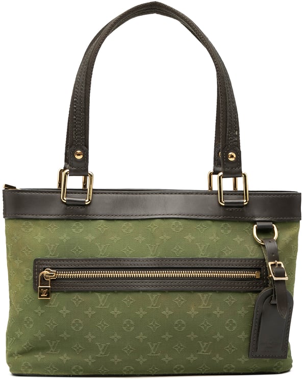 De Louis Vuitton Mini Lin Monogram Lucille PM Handbag is een chique dameshandtas in een opvallende olijfgroene kleur, met een subtiel, ton-sur-ton monogrampatroon. De tas is vervaardigd uit een combinatie van katoen en leer, en heeft een stevige bovenrand en handvatten van donker leer die de elegantie versterken. Een unieke, goudkleurige rits aan de voorkant voegt een modern accent toe, terwijl de gouden hardware een luxe uitstraling biedt. Met afmetingen van 30,5 x 18 x 7 cm is deze tas een veelzijdig en tijdloos accessoire.