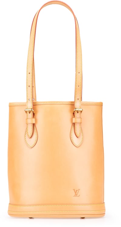 De Nomade Leather Mare Bucket PM presenteert zich in een zachte, natuurlijke bruintonering met vachetta leer dat subtiel patineert en lichte slijtage vertoont. Het ronde, minimalistische ontwerp heeft een tijdloze, klassieke vorm met zorgvuldig gestikte naden en een discreet LV-logo op de voorkant. Soepele, verfijnd afgewerkte handvatten en de strakke uitstraling maken de tas geschikt voor zowel casual als formele gelegenheden. Afmetingen: 25 x 22,5 x 15 cm; inclusief stofzak en serienummer SP1908.