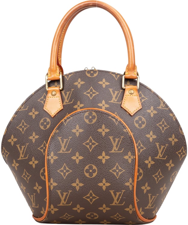 De Monogram Ellipse PM combineert een gestructureerd monogram canvas met vachetta lederen afwerking en afgeronde, opgerolde vachetta handvatten, afgewerkt met een ritssluiting bovenop en een interieur met een steekvak voor kleine items. Het iconische monogram en contrasterende stiksels geven de tas een herkenbare, luxueuze uitstraling, terwijl de afgeronde vorm en afmetingen van 27,00 x 21,50 x 16,00 cm zorgen voor compacte functionaliteit. Gemaakt in Frankrijk in 1998, uitgevoerd in bruin, en uitgevoerd met metalen bevestigingen en een ritssluiting.