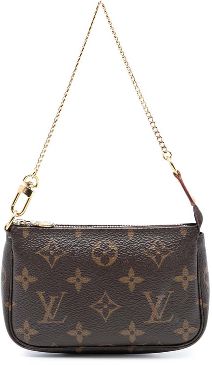 De Monogram Mini Pochette Accessoires uit 2020 combineert het iconische monogramcanvas met een gouden kettinghandgreep en een ritssluiting aan de bovenzijde, uitgevoerd in bruin en vervaardigd in Spanje. Het compacte, afgeronde ontwerp toont het klassieke LV-logo en bloemmotieven over het oppervlak met subtiele leren accenten en zorgvuldig afgewerkte randen die vakmanschap benadrukken. Afmetingen: 15,00 x 9,00 x 3,00 cm, ideaal als klein accessoire of organiser in een grotere tas. Het ontwerp en de afwerking geven dit model een tijdloze en veelzijdige uitstraling.