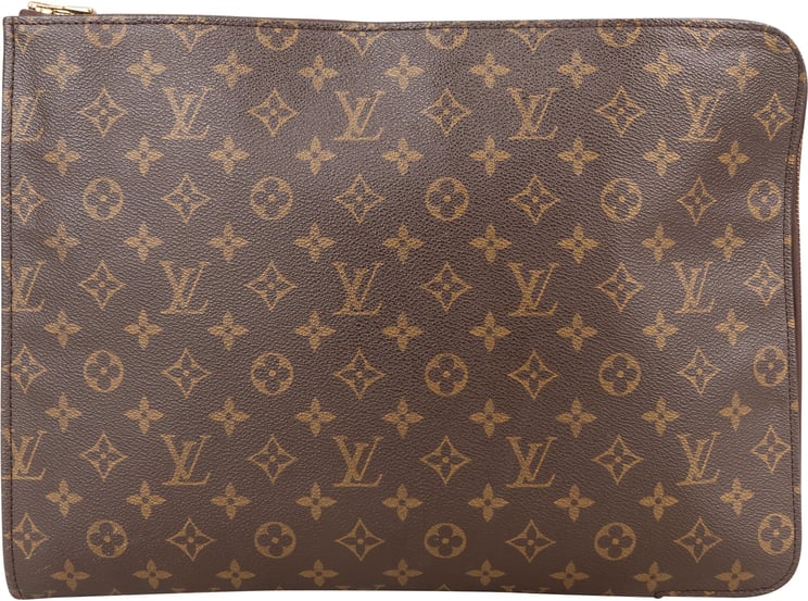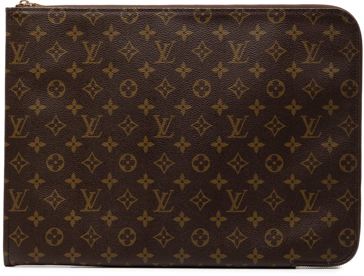 Deze Monogram Poche Documents Portfolio combineert het kenmerkende monogrampatroon met een strakke, minimalistische vorm voor een tijdloze uitstraling; het model uit 2000 heeft een rondom lopende rits en glanzende logo-accenten die de luxe afwerking benadrukken. De clutch is uitgevoerd in bruin monogramcanvas met zorgvuldig gestikte randen en meet 38,00 x 28,00 x 2,00 cm, waardoor hij geschikt is voor documenten en compacte essentials. De subtiel geïntegreerde ritssluiting en het compacte profiel onderstrepen de functionele elegantie van dit high-end accessoire, vervaardigd in Frankrijk.