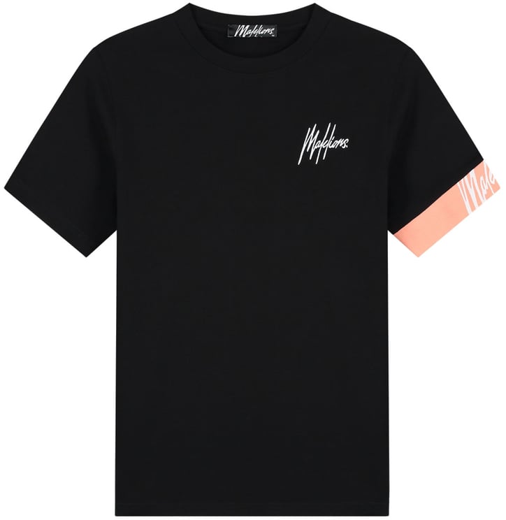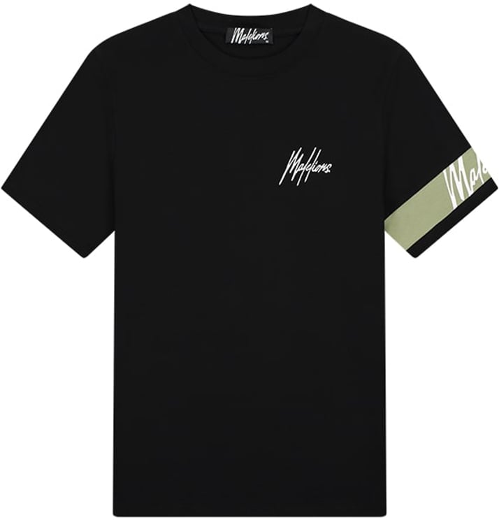Een modern zwart T-shirt met strakke lijnen en een minimalistisch ontwerp, geïnterpreteerd in het Malelions Men Captain T‑Shirt. Een subtiele witte logo-embroidery op de linkerborst voegt een verfijnd accent, terwijl de mouwen zijn afgewerkt met een lichtgele accentband voorzien van een herhalend logo in contrasterende typografie voor een dynamisch effect. De combinatie van zwart en lichtgeel geeft het shirt een frisse, eigentijdse uitstraling, geschikt voor zowel casual als sportieve gelegenheden. Het ontwerp benadrukt veelzijdigheid en functionaliteit binnen een local streetwear-esthetiek.