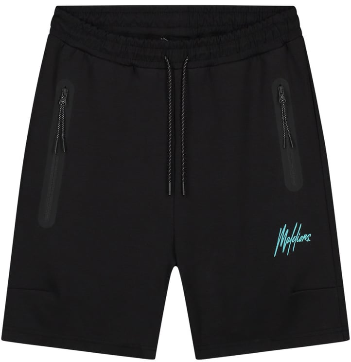 Een strak gesneden zwarte Split Short met een opvallende, gestileerde logo-print in turquoise langs de zijkant die een frisse, dynamische toets geeft. De moderne snit wordt aangevuld met subtiel geïntegreerde zijzakken voor dagelijkse functionaliteit en een tailleband met trekkoord voor een sportieve afstelling. De minimalistische kleurstelling in combinatie met het contrasterende logo maakt dit model herkenbaar binnen de local streetwear-lijn van Malelions. Deze shorts zijn ontworpen voor heren en vormgeven een eigentijdse, casual look.