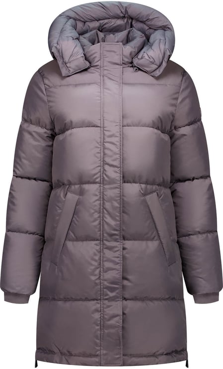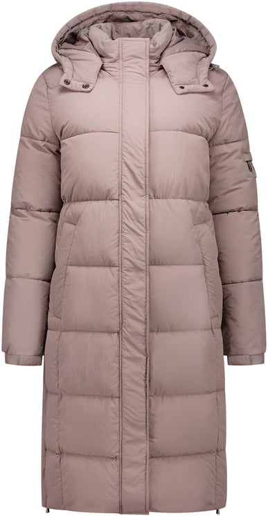 Deze mid length pufferjas uit de Women-collectie combineert een minimalistisch silhouet met luxe details en een zachte mauve kleur voor een moderne uitstraling. De rechte snit en opstaande kraag geven elegantie, terwijl de ruime, gewatteerde capuchon extra warmte biedt. Horizontale stiksels creëren textuur en de twee grote zijzakken voegen functionele opbergruimte toe. Subtiele logo-emblemen en strakke ritsen zorgen voor een eigentijdse, verfijnde afwerking die de jas geschikt maakt voor zowel casual als meer geklede gelegenheden.