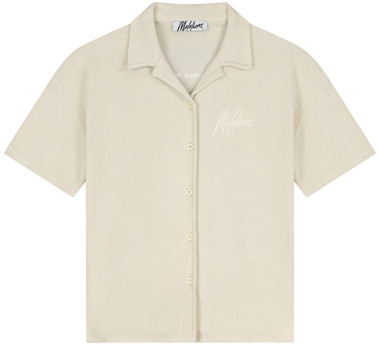 Het Malelions Women Seersucker Shirt is een elegant damesoverhemd met een frisse, crèmekleurige uitstraling, ideaal voor het lenteseizoen en de zomer. Het shirt heeft een klassieke kraag en korte mouwen, wat zorgt voor een casual maar verfijnde look. De knoopsluiting aan de voorkant voegt een speelse touch toe, terwijl de subtiele textuur van de stof een luxe gevoel biedt. Een discreet geborduurd logo op de borst benadrukt de merkidentiteit. Dit veelzijdige shirt is eenvoudig te combineren met verschillende stijlen.