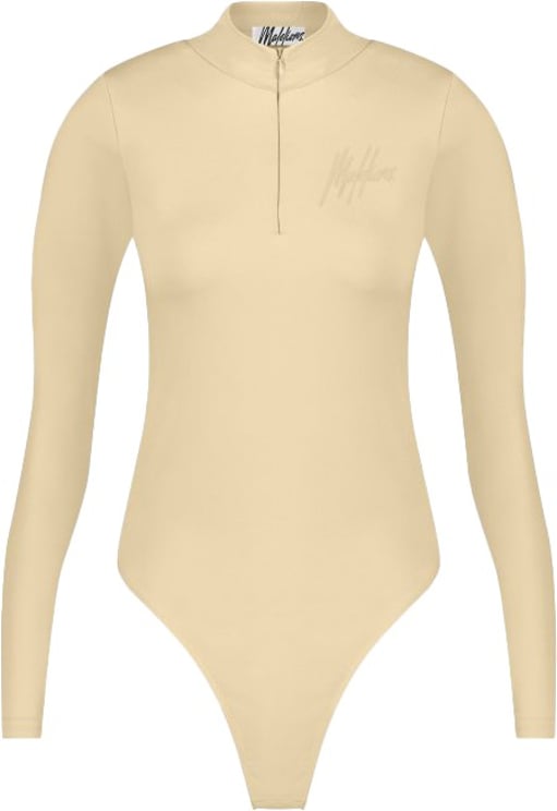 Het Malelions Women Signature Bodysuit is ontworpen voor dames en heeft een verfijnde, crèmekleurige uitstraling. Het minimalistische ontwerp met een hoge hals en lange mouwen creëert een moderne en chique look. De strakke lijnen accentueren de vrouwelijke vormen, terwijl een subtiele, geborduurde logo-detail aan de zijkant het geheel een uniek accent geeft. Dankzij de neutrale kleur en het elegante silhouet is dit bodysuit veelzijdig en eenvoudig te combineren met verschillende stijlen en gelegenheden, ideaal voor de herfst en winter.