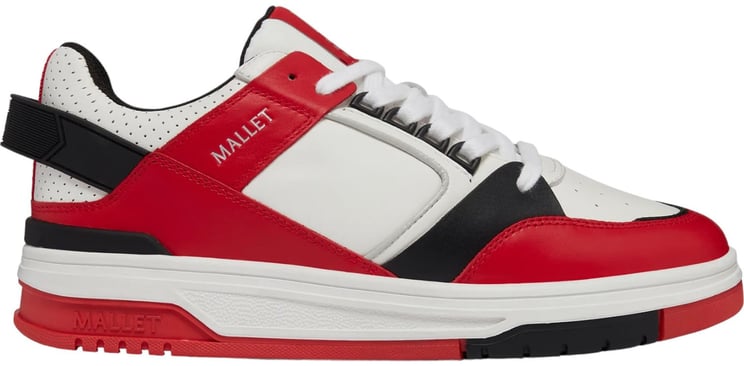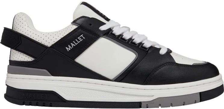 Een moderne heren sneaker uit de nieuwste collectie Mallet London met een dynamische, sportieve uitstraling dankzij wit, levendige blauwe en zwarte accenten. Strakke, geometrische zijpanelen met subtiele perforatie geven textuur, terwijl de tong is afgewerkt met een opvallend logo en de hiel een verhoogde structuur heeft voor een gedurfde look. Gemaakt van leer en uitgerust met een stevige rubberen zool in contrasterende kleur voor eigentijdse flair. Ontworpen voor een trendy, casual uitstraling.