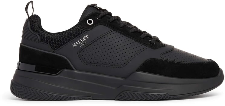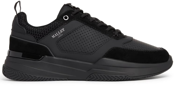 De Mallet Marques sneakers zijn ontworpen voor de moderne man en combineren luxe met sportieve elementen. Deze volledig zwarte sneakers hebben subtiele perforaties voor een dynamisch effect en een mesh-inzet aan de bovenkant voor een eigentijdse uitstraling. De gedurfde, chunky zool biedt niet alleen een robuuste look, maar heeft ook een glanzend accent aan de achterkant. De merknaam 'Mallet' is elegant op de zijkant geplaatst, wat bijdraagt aan de luxe uitstraling. Deze sneakers zijn een uitstekende keuze voor een trendy, urban look in het herfst- en winterseizoen.