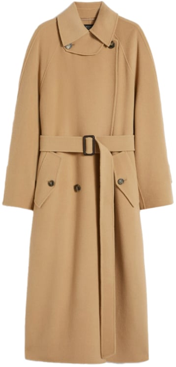Een elegante camel jas uit de Coats Camel-lijn met klassieke dubbele rij knopen en een opstaande kraag voor een verfijnde afwerking. Raglanmouwen geven een moderne twist, terwijl de tailleband met gespsluiting de taille benadrukt. Voorzien van praktische klepzakken aan de voorkant en een minimalistisch, tijdloos silhouet dat de strakke lijnen van het ontwerp benadrukt. Deze jas combineert klassieke details met hedendaagse accenten voor veelzijdig draagcomfort.