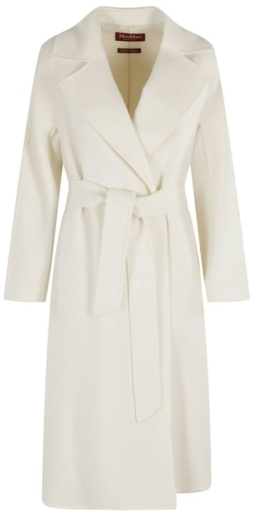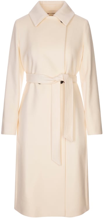 Een elegante Resina mantel uit de Weekend-collectie met een brede reverskraag en dubbele rij knopen, uitgevoerd in zacht ivoorkleurig wool. De rechte snit valt tot net boven de knie en heeft een comfortabele pasvorm die de taille kan worden geaccentueerd met de bijpassende strikceintuur. De mantel heeft lange licht uitlopende mouwen, steekzakken langs de zij en een volledige voering van 50% acetate en 50% viscose. Subtiele stiksels en zorgvuldig afgewerkte naden benadrukken de luxe afwerking; samenstelling: 100% virgin wool.