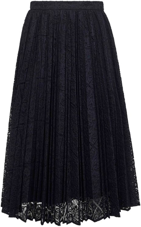 Deze Max Mara rok in diep marineblauw biedt een elegante midi-lengte, ideaal voor herfst- en winterseizoenen. Het ontwerp is voorzien van een verfijnde kantstructuur die een chique uitstraling creëert. Het plissé-effect voegt beweging en dynamiek toe aan de rok, terwijl de delicate randafwerking met een geometrisch patroon de aandacht trekt. De combinatie van de rijke kleur en het intricate kant benadrukt de luxe uitstraling, waardoor deze rok geschikt is voor zowel formele als casual gelegenheden. Een tijdloze toevoeging aan elke garderobe.