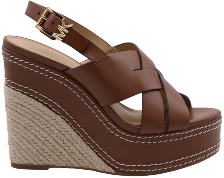 De Sandaal Gold van Michael Kors is een luxe keuze voor dames, met een elegante glanzende gouden kleur. Het ontwerp bevat een stijlvolle, gekruiste band over de voet, wat bijdraagt aan de verfijnde uitstraling. De hoge, gevlochten sleehak voegt hoogte en textuur toe, terwijl de combinatie van de metallic afwerking en de natuurlijke jute-look van de hak een aantrekkelijk contrast vormt. Een gespsluiting aan de achterkant zorgt voor een subtiele maar functionele detail. Geschikt voor zowel casual als chique gelegenheden.