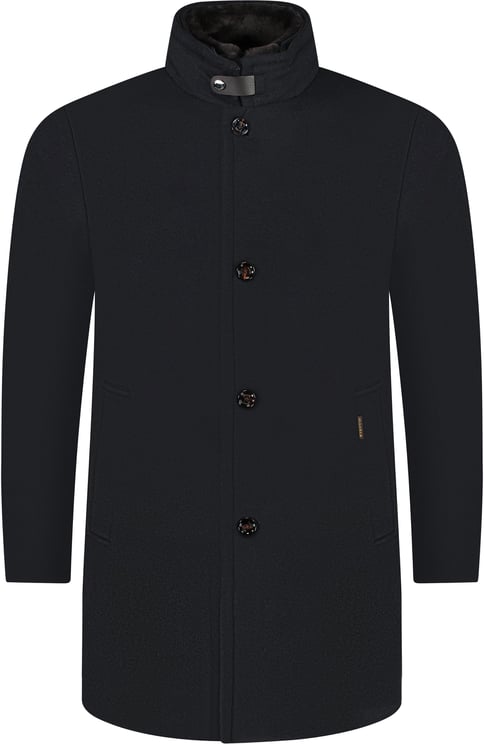 De Bas-le mantel combineert tijdloze elegantie met moderne eenvoud en toont zich in een diepe, klassieke zwarte kleur. Het ontwerp heeft een dubbele rij glanzend afgewerkte knopen die een luxe accent geven en een hoge kraag voor extra bescherming tegen de elementen. Voorzien van twee ruime klepzakken biedt de jas praktische opbergruimte zonder het minimalistische silhouette te doorbreken. Strakke lijnen en een verfijnde afwerking onderstrepen de hedendaagse esthetiek van dit high-end herenmodel.