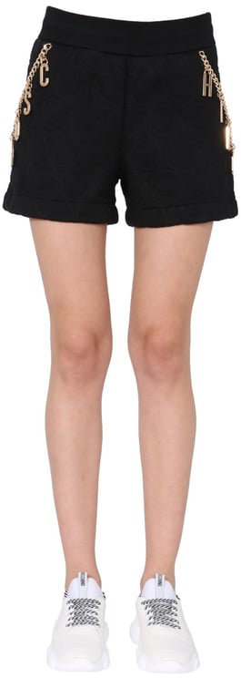 Deze Denim Shorts van Moschino accentueren dankzij de hoge taille de benen en bieden een tijdloze, minimalistische uitstraling in diep zwart. Het ontwerp combineert een klassieke vijf-pocket constructie met subtiele stiksels voor casual elegantie. Een gouden riem met iconische berenkop geeft een luxe, speelse accent dat contrasteert met de ingetogen kleurstelling. Voor de sluiting is een knoop- en ritssluiting toegepast, waardoor de shorts zowel verzorgd als praktisch zijn.