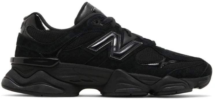 De New Balance 9060 Triple Black Patent combineert retro-DNA met futuristische details in een volledig zwarte uitvoering die opvallend en verfijnd tegelijk oogt. Het chunky silhouet heeft ronde zolen en een dynamische bovenkant waarin mesh en suède overlays zijn afgewerkt met glanzende patent lederen details, waaronder het opvallende N‑logo en het hielpaneel. Subtiele stiksels en de gestroomlijnde vorm benadrukken het retrofuturistische ontwerp, terwijl de dikke ABZORB-midsole zorgt voor hoog comfort bij dagelijks gebruik. Style ID U9060ZBO maakt dit model herkenbaar binnen de 9060-line als een moderne chunky runner met sterke streetwear-appeal.