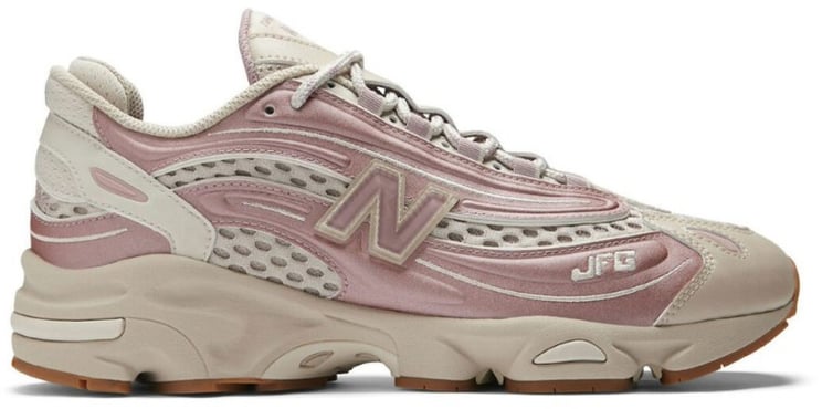 Deze Pink sneaker uit de contemporary-lijn combineert metallic zilver met zachtroze tinten voor een moderne, opvallende uitstraling. Golvende lijnen op de zijkanten en een groot, herkenbaar N-logo geven een dynamisch en herkenbaar ontwerp. Mesh-inzetstukken en subtiele oranje accenten voegen visuele diepgang, terwijl de sportieve, gestroomlijnde vorm en stevige zwarte zool contrast en stevigheid bieden. De mix van verschillende texturen en kleuren maakt deze sneaker een uitgesproken keuze binnen casual looks.