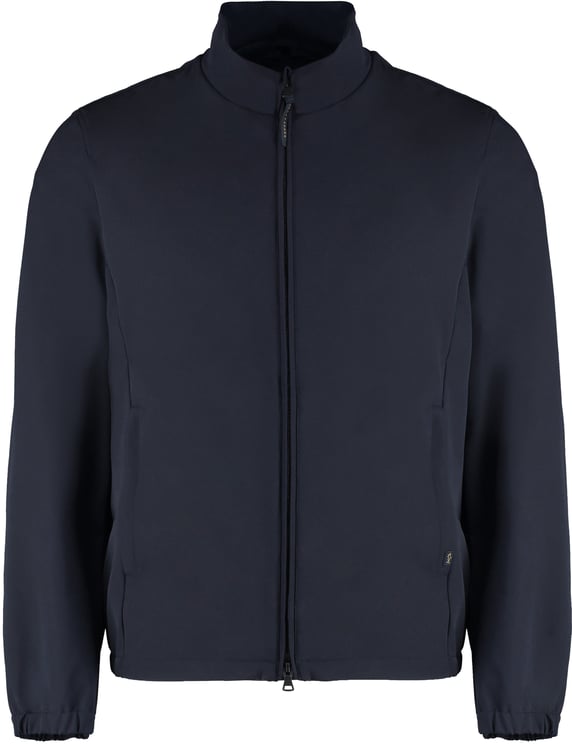 Een modern uitgevoerde Technical fabric waterproof jacket uit de collectie van Paul & Shark met een diepe navy kleur en strakke, minimalistische lijnen. De hoge kraag en subtiele stiksels op schouders en mouwen geven een sportieve, dynamische uitstraling, terwijl de discreet weggewerkte rits bijdraagt aan het elegante design. De jas heeft elastische, ribgebreide boorden aan mouwen en onderkant voor een nette afwerking en praktische zijzakken met verfijnde afwerking. Materiaal: 88% polyester, 12% elastaan; voering 100% polyester.