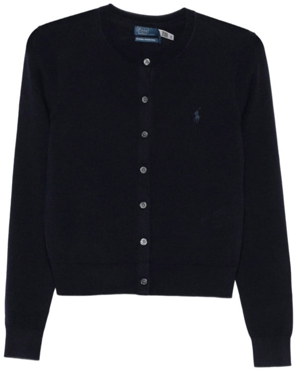 Deze Ralph Lauren Maglie Blu combineert Italiaanse wol van medium gewicht met een tijdloze, donkerblauwe uitstraling. Het ontwerp heeft een ronde hals en sluit met een rij glanzende knopen aan de voorkant voor een verfijnde touch. De cardigan heeft lange, mooi aansluitende mouwen, een nette boord aan mouwen en onderkant, en een subtiel geborduurd merkembleem op de borst. De licht relaxed vallende pasvorm en heuplengte geven comfortabele, casual elegantie die geschikt is voor uiteenlopende gelegenheden.