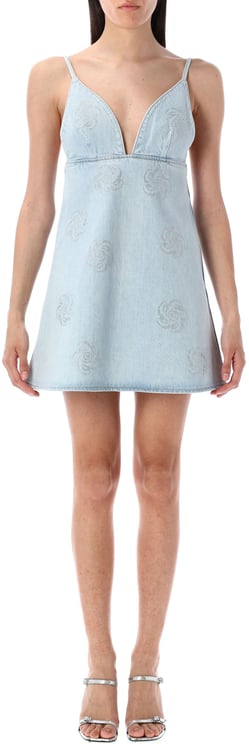 Midi Puff Dress Flower Intarsia Blu