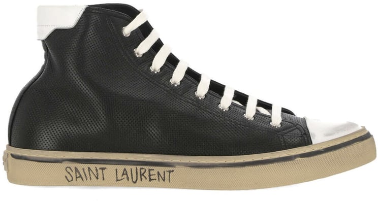 De Saint Laurent Malibu Leather Sneakers zijn vervaardigd uit 100% kalfsleer en bieden een luxe uitstraling in zwart. Kenmerkend zijn de subtiele perforaties en het relief logo detail, dat voor een textuurelement zorgt. De ronde neus en hoge schacht dragen bij aan het opvallende ontwerp. Witte veters en een lichtgekleurde rubberen zool creëren een fraai contrast. De premium leren binnenzool garandeert comfort, terwijl de rubberen buitenzool zorgt voor duurzaamheid. Deze sneakers zijn een stijlvolle aanvulling voor elke casual outfit in de herfst- en wintermaanden.
