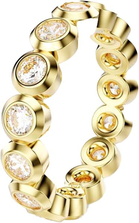 De Imber Ring met Kristal combineert een glanzende gouden afwerking met een reeks fonkelende ronde stenen die in een speelse afwisseling zijn geplaatst. Het ontwerp heeft een moderne, organische vorm met een vloeiende lijn die beweging en dynamiek toevoegt aan het sieraad. Door de zorgvuldig gerangschikte kristallen ontstaat een stralend effect dat het licht prachtig weerkaatst, geschikt voor dagelijks gebruik of speciale gelegenheden. Dit elegante en verfijnde exemplaar uit de premium collectie van Swarovski vormt een opvallend accessoire voor dames.