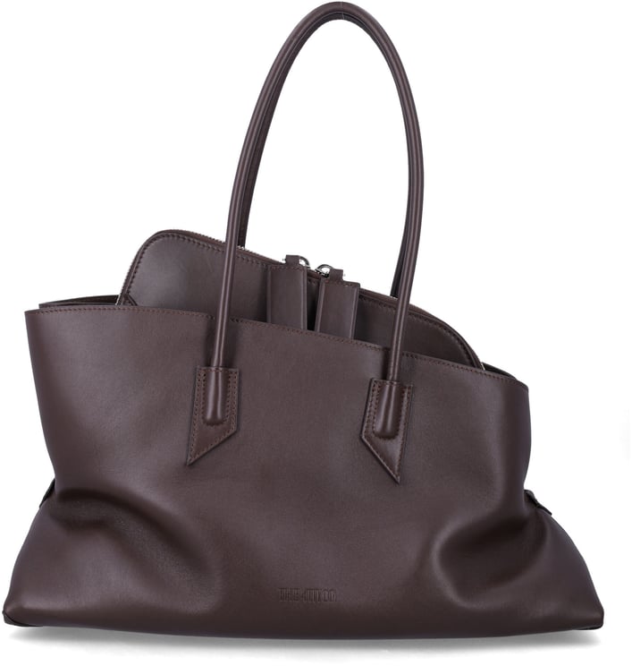 Een sculpturale, asymmetrische tote met een geraffineerde, diepbruine uitstraling die zowel dagelijks als elegant draagbaar is. De La Passegiata Small Dark Brown is vervaardigd uit kalfsleer en heeft soepele, buisvormige leren handvatten; het interieur is afgewerkt met suède en een centraal ritssluitingvak tussen twee open bovenvakken. De gestructureerde silhouet met subtiel afgeronde hoeken, opvallende stikseldetails en discrete branding onderstreept de architecturale esthetiek. Voorzien van zilverkleurige hardware, metalen beschermvoetjes en afmetingen van 19 x 34 x 10 cm.