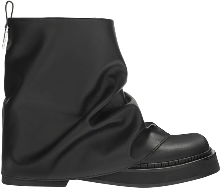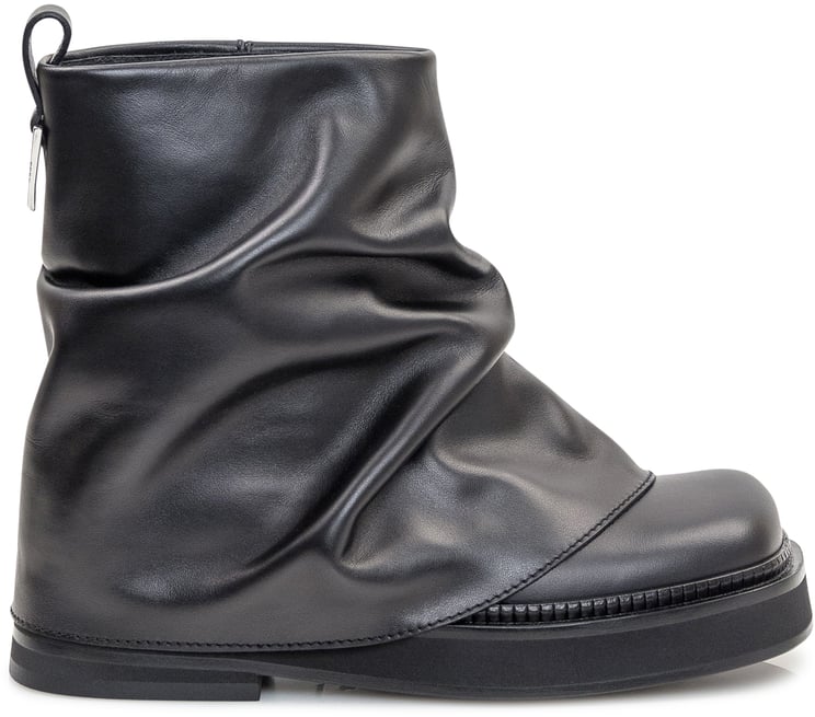 Deze Mini Robin Combat leather boots combineren gedurfde uitstraling met tijdloze elegantie dankzij het diepzwarte kalfsleer. De slouchy bovenkant en subtiele plooivorming geven de laars een dynamische textuur, terwijl de afgeronde neus een zachte touch toevoegt. De stevige chunky zool met contrasterende stiksels zorgt voor een robuuste basis en verfijnde afwerking, aangevuld met een opvallend back logo detail. Crafted als een statement-boot voor dames binnen The Attico’s new luxury lijn.