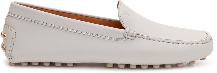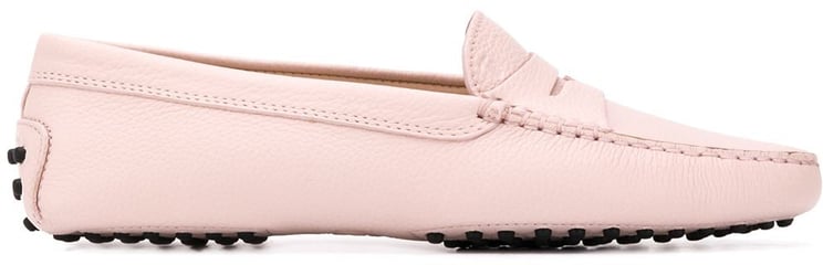 Pink leather Gommino driving shoes from Tod's featuring round toe, slip-on style, branded insole and rubber sole.