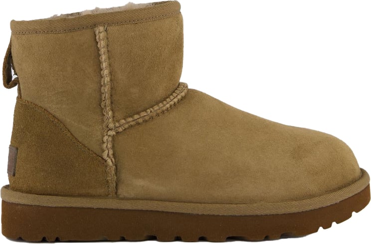 Een tijdloze enkellaars uit de Classic Mini II-collectie in zacht taupe, uitgevoerd in premium twinface schapenvacht met nauwkeurige overlockstiksels langs de naden. De schoen heeft een rechte schacht met een subtiele geborduurde naad en een kleine leren lus achterop voor gemak en detail. De UGGpure™ wolvoering biedt natuurlijke warmte, terwijl de lichte Treadlite by UGG™ buitenzool zorgt voor demping en verbeterde grip. Het minimalistische, afgeronde neusontwerp maakt deze mini-boot geschikt voor zowel casual als meer geklede looks.
