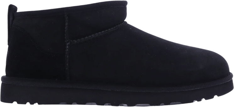De UGG Classic Ultra Mini Leather in Regen Black combineert een minimalistische uitstraling met veelzijdigheid. Deze heren schoen heeft een volledig zwarte kleur en een lage schacht voor een casual look. Contrasterende stiksels langs de zijkanten bieden een subtiele, moderne twist, terwijl het herkenbare merklabel aan de achterzijde extra stijl toevoegt. De ronde neus en soepele lijnen dragen bij aan de tijdloze uitstraling, waardoor deze schoen geschikt is voor zowel binnen- als buitenshuis gebruik. Een ideale keuze voor elke gelegenheid.