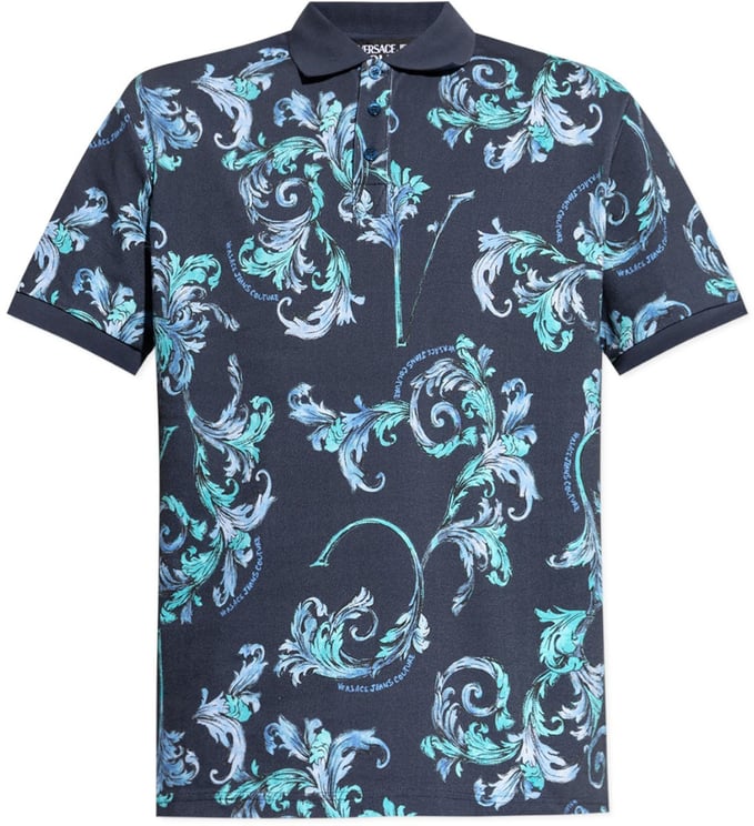 Dit casual overhemd van Versace Jeans Couture heeft een diepblauwe basis, versierd met levendige, abstracte patronen in tinten turquoise en groen. Het ontwerp is geïnspireerd op klassieke barokke elementen, met vloeiende lijnen en gedetailleerde motieven die luxe uitstralen. De subtiele knopen en korte mouwen zorgen voor een ontspannen uitstraling, terwijl de klassieke kraag bijdraagt aan de tijdloze charme. Dit overhemd is een opvallend statement piece, ideaal voor casual gelegenheden in het voorjaar en de zomer.