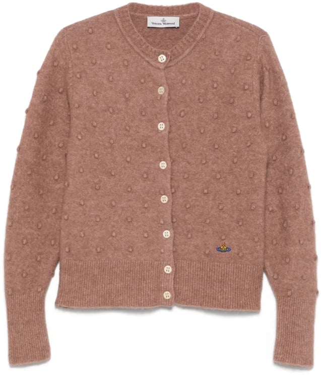 Deze Bea Cropped Cardi Grey Melange van Vivienne Westwood combineert een klassieke knoopsluiting met glanzende knopen die een luxe accent geven. Het geborduurde iconische logo op de linkerborst zorgt voor een chique touch. De lange mouwen en subtiele afwerking versterken de verfijnde uitstraling, terwijl de iets kortere onderrand het ontwerp een moderne twist geeft. De zachte grijze melange maakt dit damesstuk veelzijdig en tijdloos, geschikt voor verschillende gelegenheden.