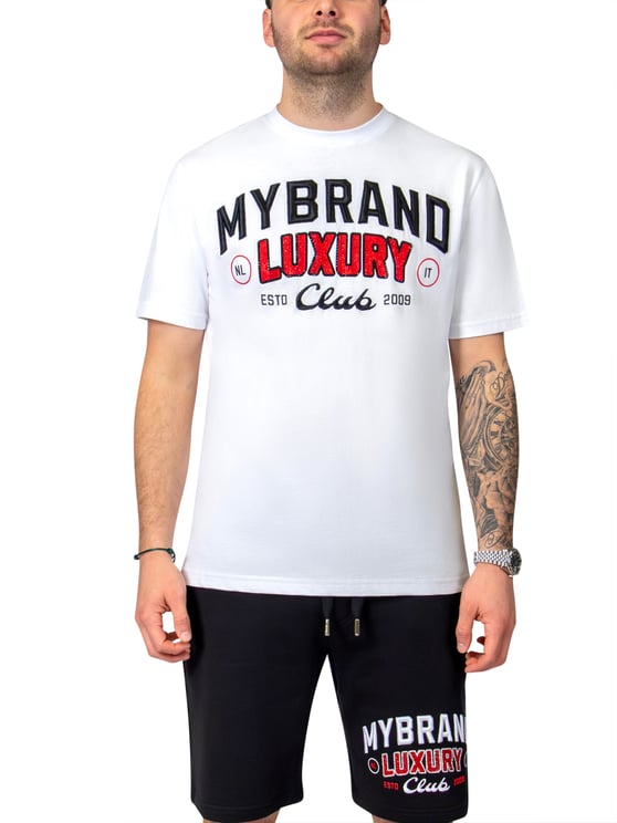 Het logo van My Brand, een verfijnde en moderne typografie, wordt op een slimme manier geïntegreerd in de kledingstukken. Dit zorgt ervoor dat het logo niet alleen een herkenbaar symbool is, maar ook een element dat bijdraagt aan het algehele ontwerp. Met een subtiele aanwezigheid op de kleding, straalt het klasse en stijl uit zonder te schreeuwen om aandacht.