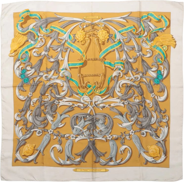 PRE-LOVED FINAL SALE WINTER SALE BEST SELLER Hermès Hermès Hermes Carré 90 "LE MORS A LA CONETABLE" Silk handkerchief in Yellow Vanaf € 180,- Origineel: Vanaf € 250,-