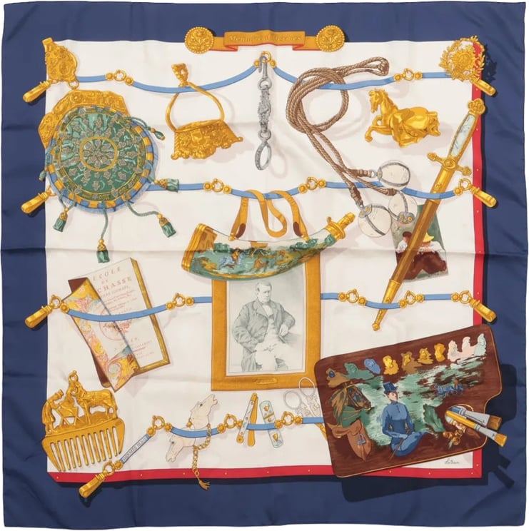 PRE-LOVED FINAL SALE WINTER SALE BEST SELLER Hermès Hermès Hermès Carré 90 "Memoire d'Hermes" Silk handkerchief in Navy Blue Vanaf € 232,- Origineel: Vanaf € 250,-