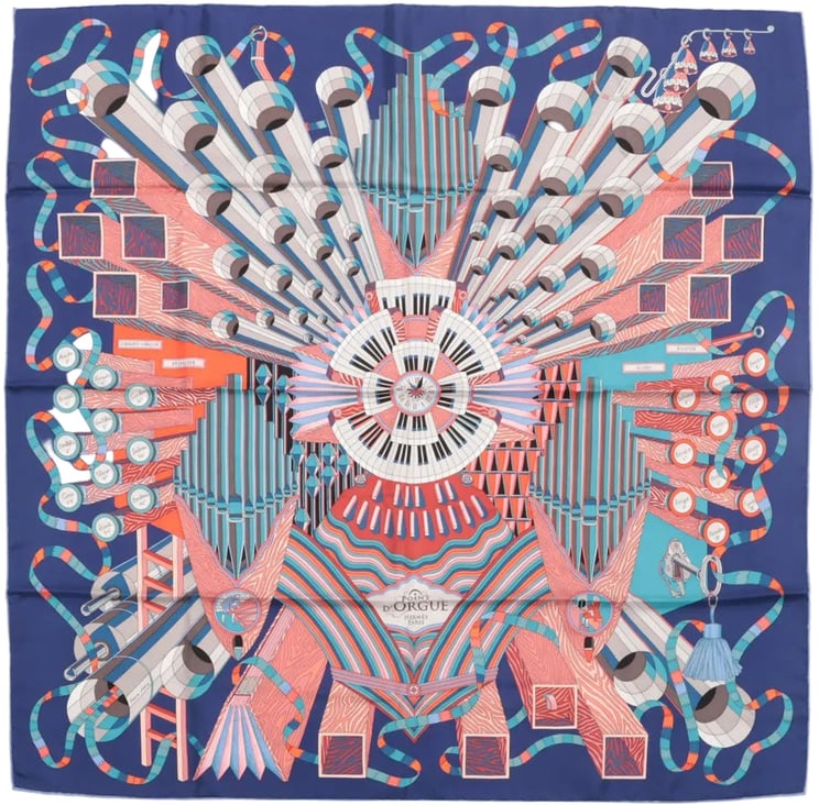 PRE-LOVED FINAL SALE WINTER SALE BEST SELLER Hermès Hermès Hermès Carré 90 "D'ORGUE" Silk handkerchief in Navy Blue Vanaf € 375,- Origineel: Vanaf € 395,-
