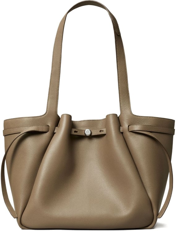 Het dubbele T-logo van Tory Burch is meer dan een merknaam; het is een symbool van luxe en verfijning. Vaak subtiel geïntegreerd in het design, voegt het logo een vleugje herkenning en prestige toe aan elke tas. Of het nu als een metalen accent op de sluiting of als een patroon in het leer wordt gebruikt, het logo maakt elke tas uniek en onmiskenbaar Tory Burch.
